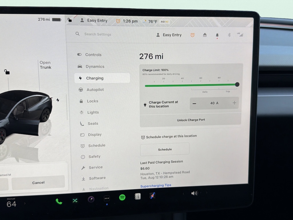 - Charge port door: power